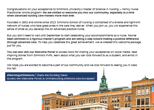 The school wanted a care package to celebrate students who had either been accepted into or had graduated from the Simmons University Nursing program during the 2020 Covid-19 quarantine. Functional and fun, the items included were versatile and inclusive of both student groups. Each group was sent a tailored postcard and water bottle. The packages welcomed new students to the nursing program and gave graduates functional items they could use in their new career.